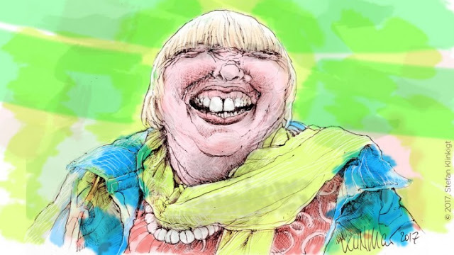 Aber nein, ich muss die Seite öffnen und wer springt mir entgegen, eine Karikatur von Stefan Klinkigt mit dem Gesicht einer Frohnatur.