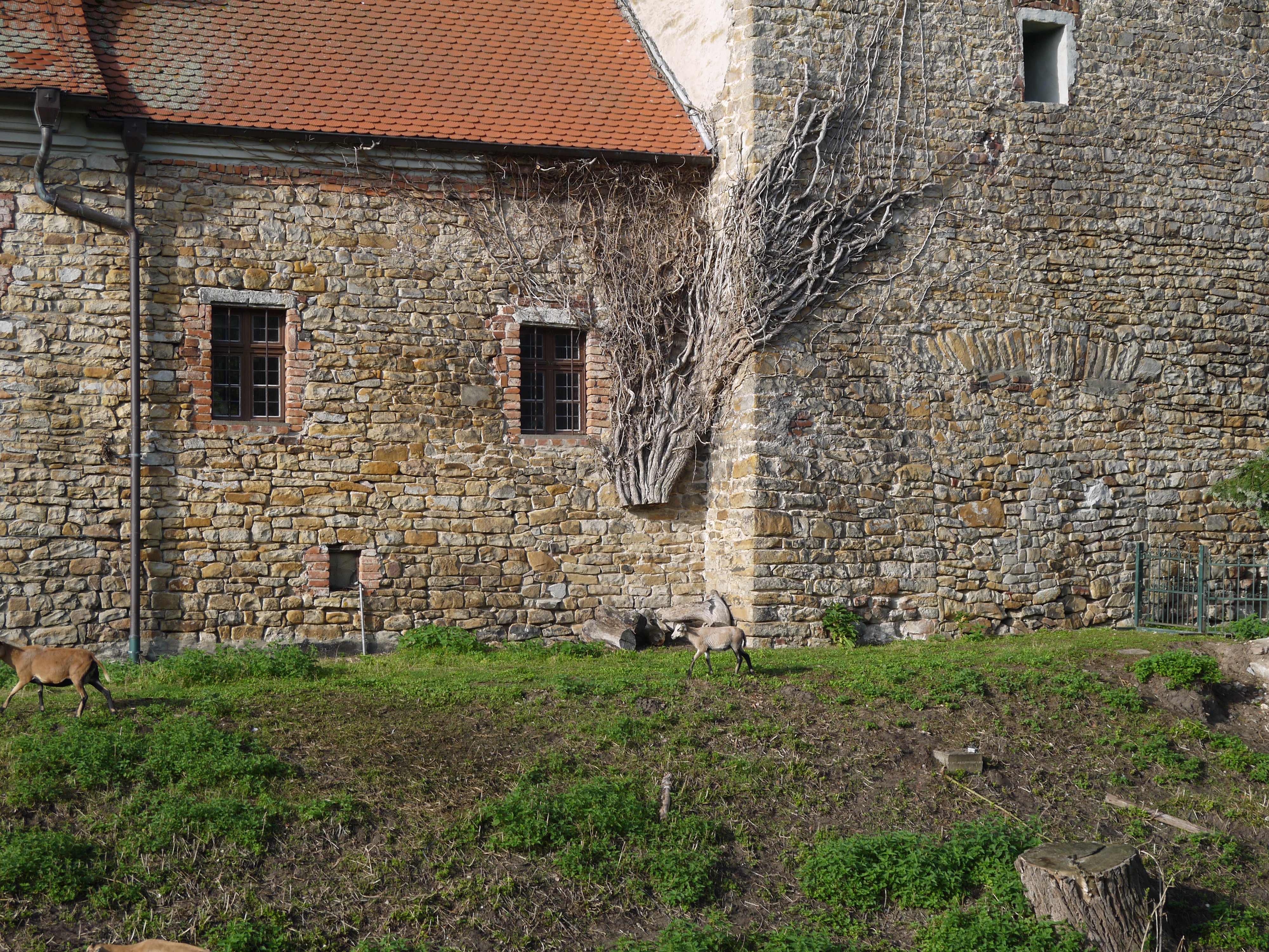 Dem geübten Auge des Betrachters entgeht nicht der abgestorbene Weinstock, dessen lange weit verzweigte Äste sich an das alte Mauerwerk klammern. Selbst im Hochsommer ziert nicht ein einziges Blatt die sich immer weiter verzweigenden Äste.