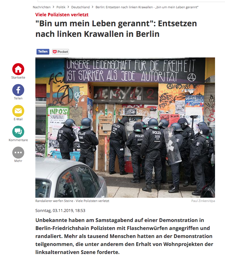 Und die Polizei darf sich höchstens mit Wattebaellchen wehren. Das da ja keine Übergriffe stattfinden. Da passen unsere Volksvertreter der Regulierungspartei ganz genau auf. Und Spenden noch Beifall für die „Aktivisten“ ..