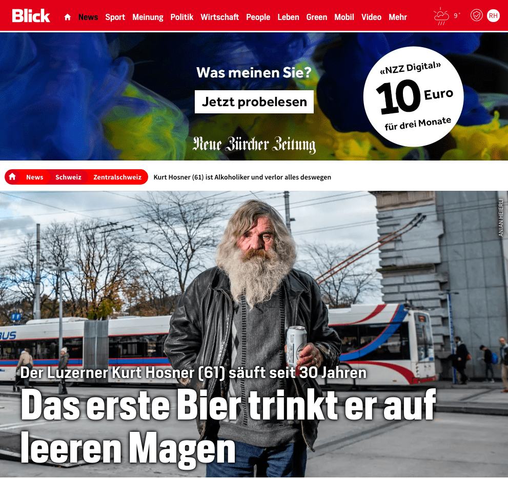 Der Schweizer ‚Blick‘ widmet sich aus Sicht des Boulevards dem Thema ‚Volksdroge Alkohol‘.