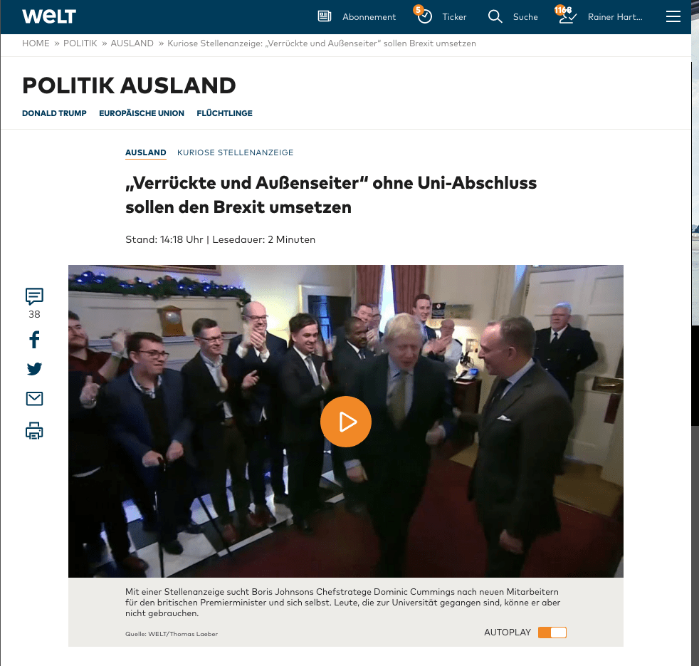 Die deutsche Presse empört sich wieder einmal unisono über ‚uns Boris‘, nein, nicht Becker, sondern Boris Johnson.
