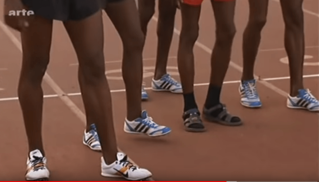 Hier ein Beispiel: Das sollen „Männerbeine“ sein! Wir sehen hier keine Kinder, sondern ausgewachsene, höchsttrainierte Männer. Wenn wir uns die Männerbeine dieser kenianischen Spitzenläufer(!) ansehen, bleibt ein Schwanken zwischen Anerkennung und Mitleid.